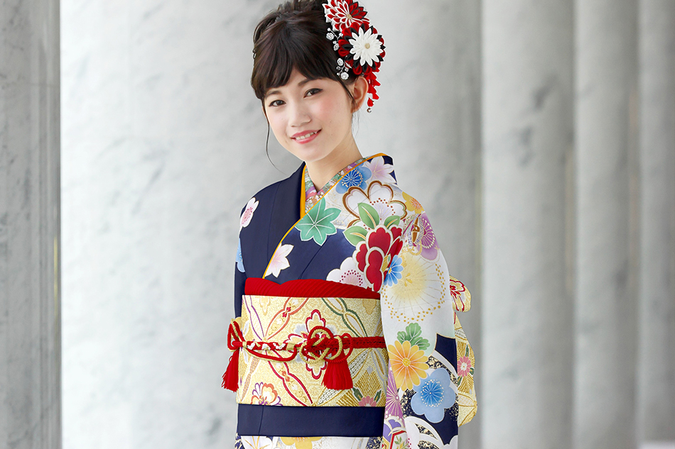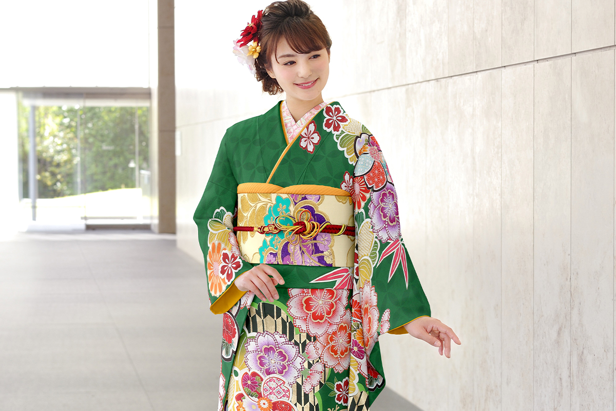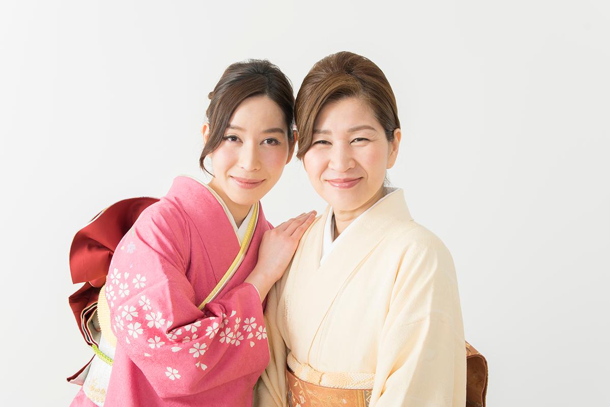 お母様の思い出の振袖を現代風にコーディネート致します。